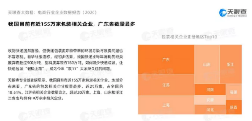 因此,受電商的帶動,自2014年開始,我國包裝相關企業注冊增速始終保持17%以上。其中,2019年新增超過32萬家相關企業,2020年前10個月已新增近23萬家相關企業。